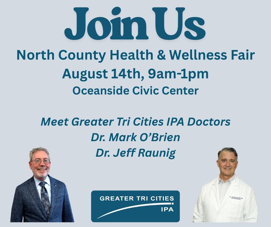 Mark you Calendars! Join Greater Tri Cities IPA at The North County Health & Wellness Fair hosted by Oceanside Chamber of Commerce. …