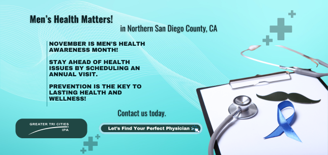 If you haven’t scheduled your annual health check-up, November—Men’s Health Awareness Month—is the perfect time. Take charge of your health by booking an appointment with a Greater Tri-Cities IPA physician today. Together, we’ll develop a personalized health plan to help you live a longer, healthier life.